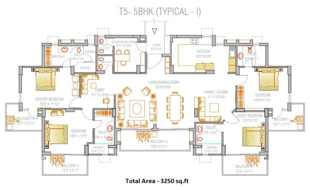 5 BHK – 3250 sq ft (T5 – Typical I)