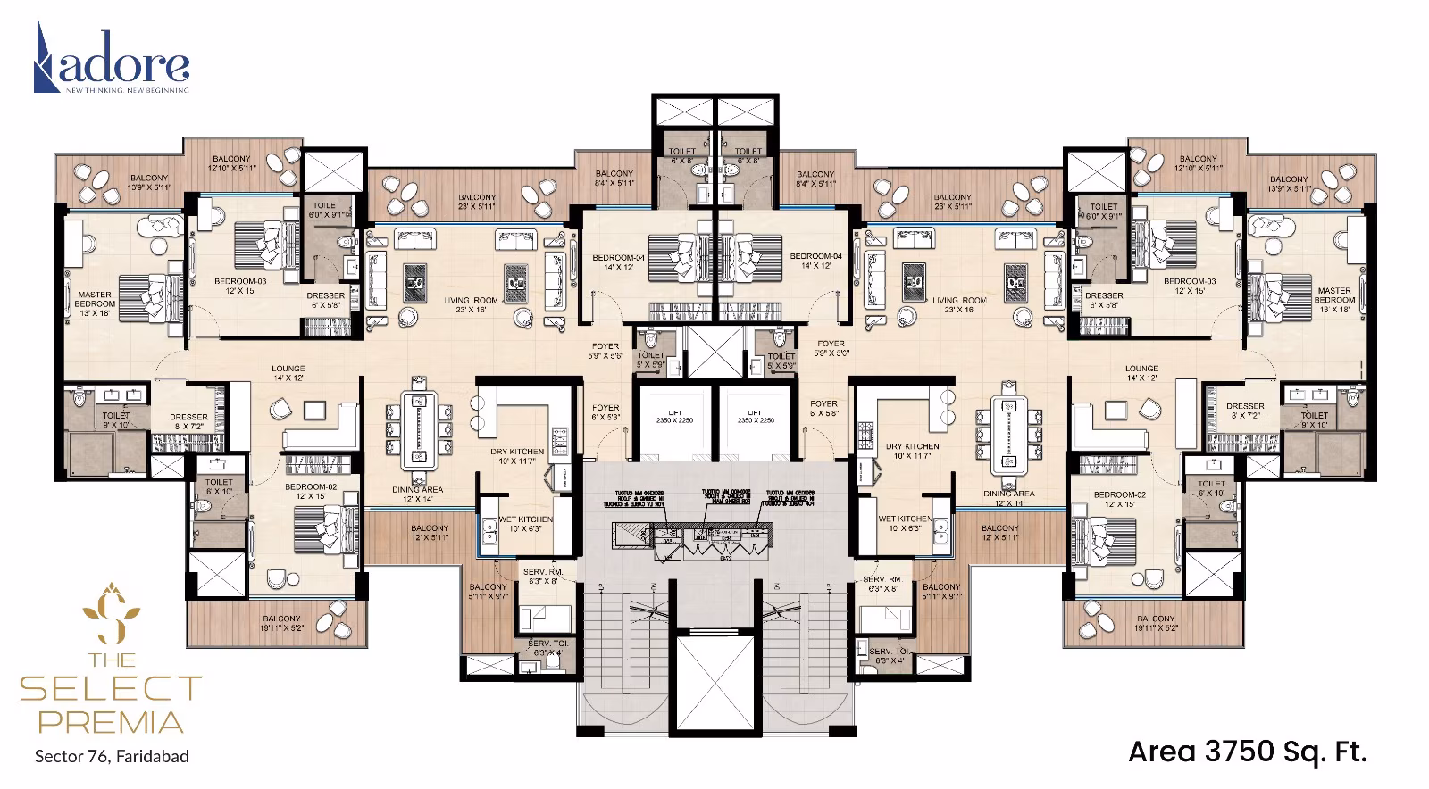 Adore The Select Premia is an ultra-luxury residential project by the reputed Adore Group, located in the rapidly developing Sector 76, Faridabad. Designed for modern homebuyers, the project offers premium residences with elegant interiors, spacious layouts, and excellent connectivity to major parts of Delhi-NCR.